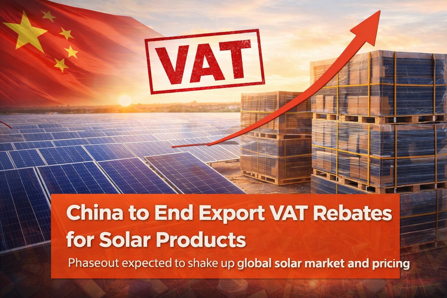 China will phase out VAT export rebates on solar products from April 2026, potentially increasing module prices in Europe and accelerating pre-2026 procurement across the European solar market.