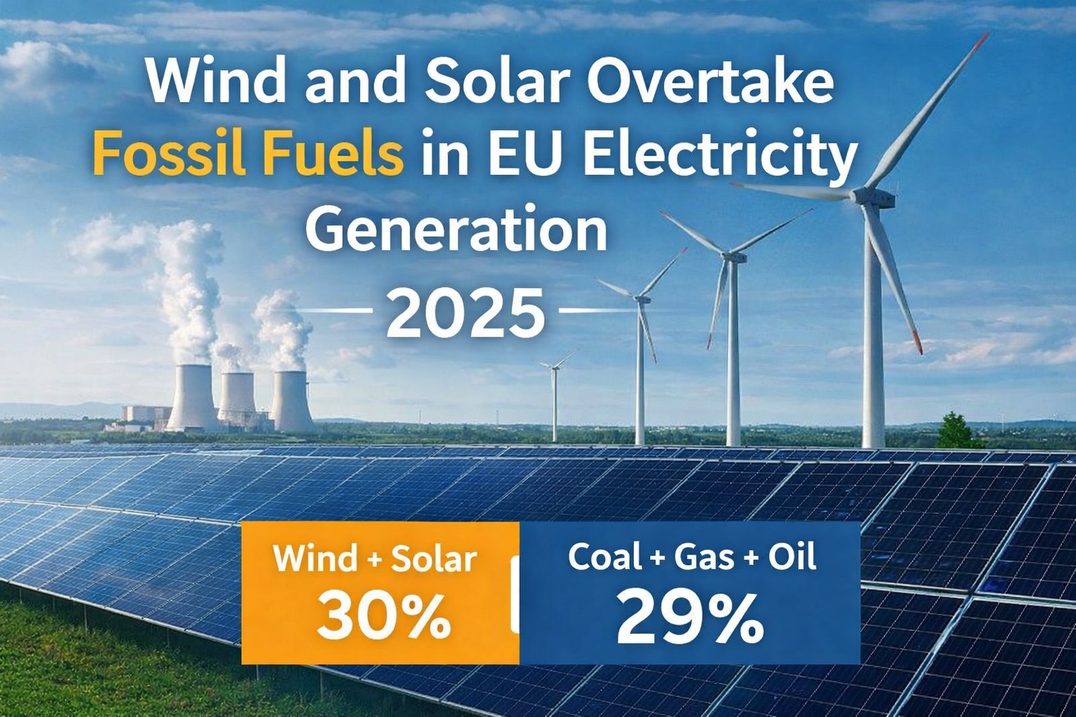 Wind and solar became the EU’s largest electricity sources in 2025, surpassing fossil fuels as renewables and low-carbon energy reached record levels across Europe.